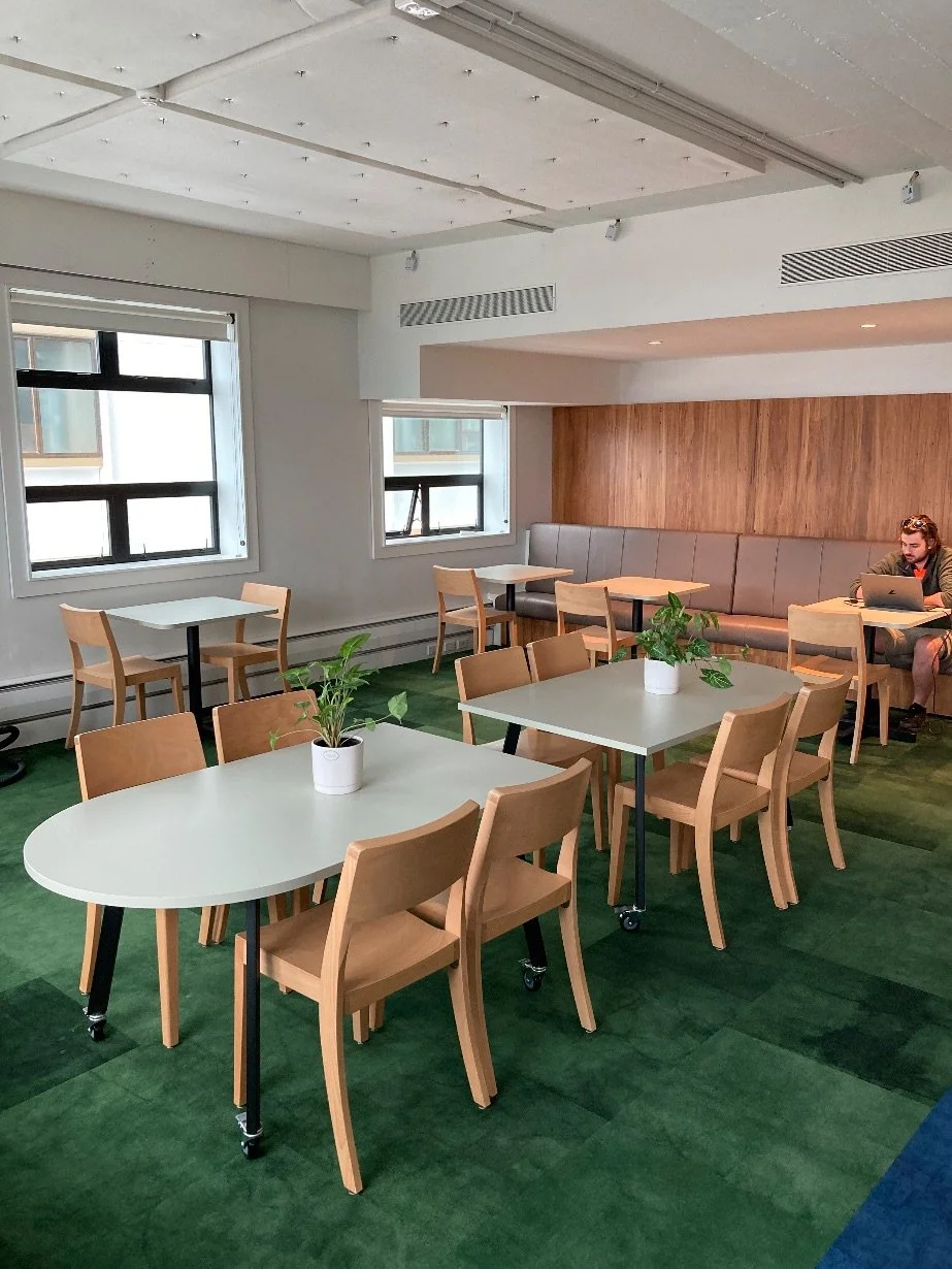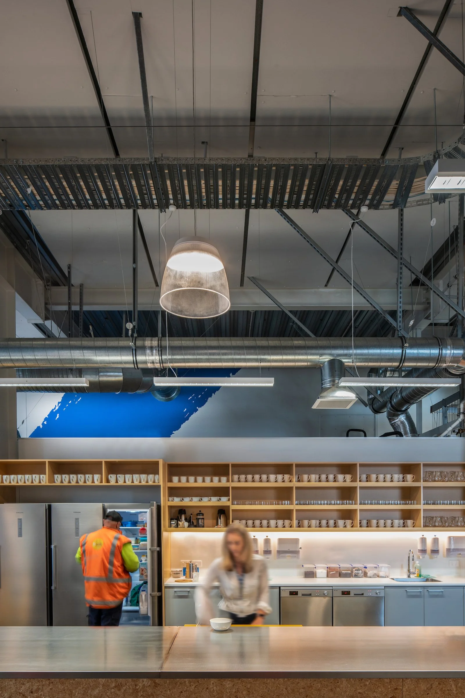 The fitout design embraced the building’s existing features — exposed ceilings, daylight, and views — and complemented them with warm, natural materials and a sustainable fitout.